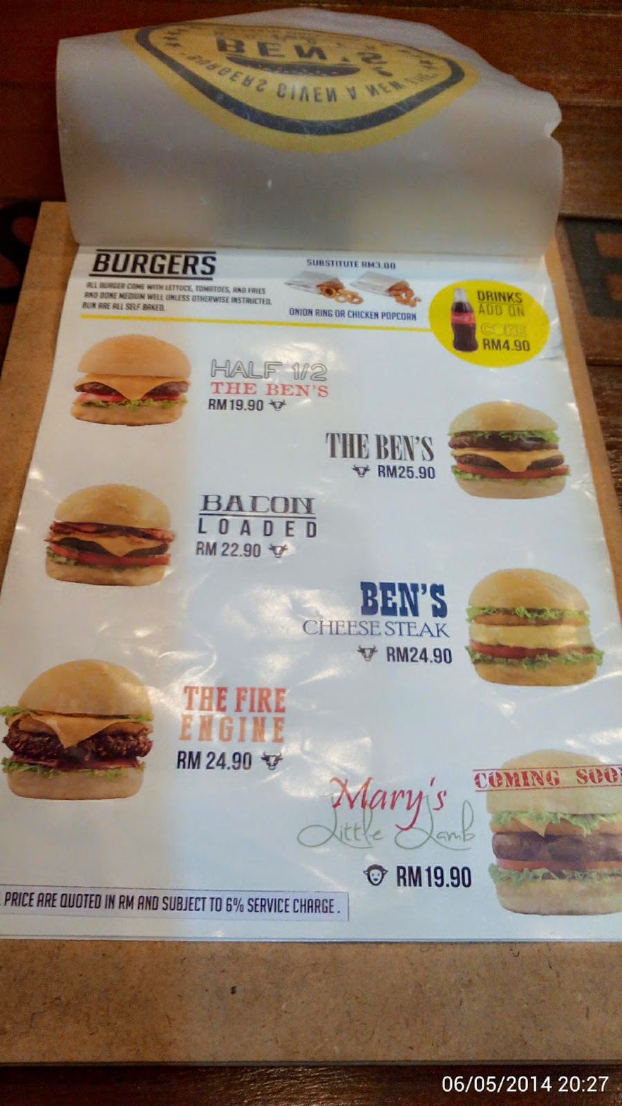 There are variety choices for burger patty - beef, fish and chicken. Overall the taste is ok. V will go back n try other choices of burgers again but v prefer Ben's Burger more.